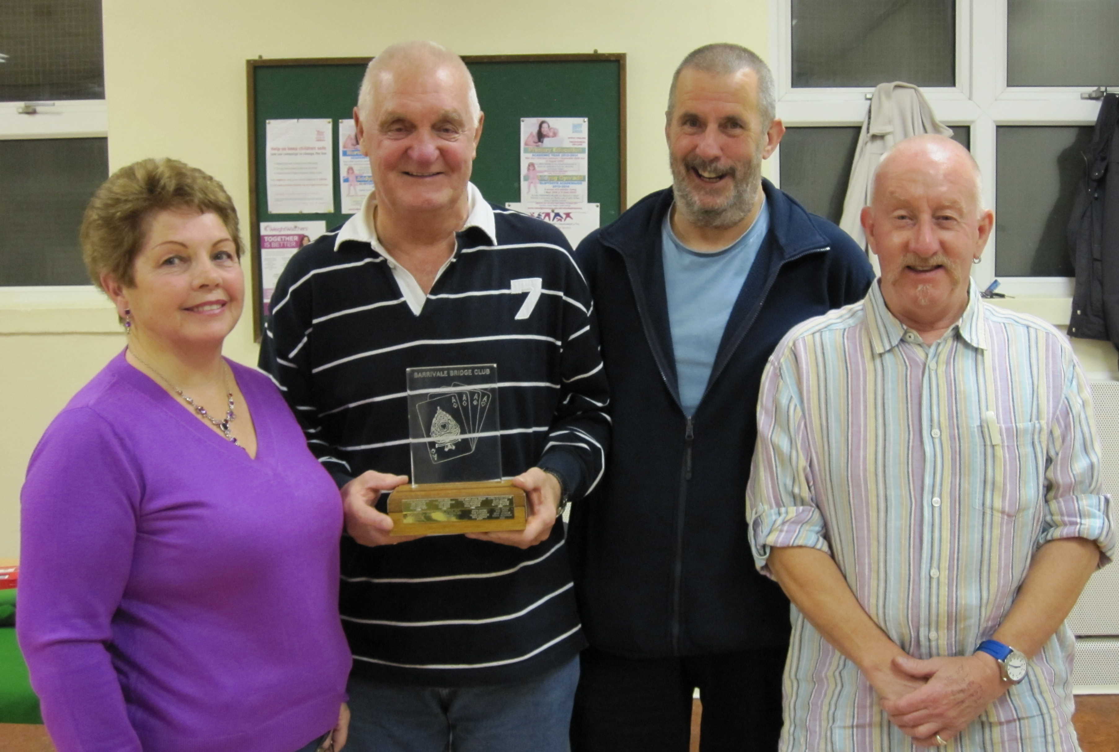 News and Forthcoming EventsNew website under construction click here to view Announcing & Alerting Summary NO BRIDGE on 22nd April Next event - Celtic simultaneous pairs - April 29th 27th Birthday teams won by Carol, Jane, Peter & Tim Annual handicap winner was Viv WBU President Herbie Rowley with Huw and Celia Mixed pairs handicap winners National Mixed pairs winners Mark & Noelle with cards made by Irene Club Mixed pairs won by Denis & Jane Congratulations to Teams Champions I Fought the Law - the Law Won - Mike, Graham, Tim & Irene Four Aces winners - 3 Men & a Little Lady - Lyn, Bryn, Dave & Alan Congratulations to the Men's & Ladies' champions, Helen & Judith and Denis & Mick Winners of the Nancy Malpas Trophy were Dave T & Sean The Barry Town Mayor, Councillor Claire Curtis visited the club on the 10th September and presented the EWBA Claret Jug to Huw & Mike and the Doughty Bowl to Alan & Hilary Club Championship pairs - 14th & 21st May winners Denis & Noelle handicap winners Alan & Lyn =========================